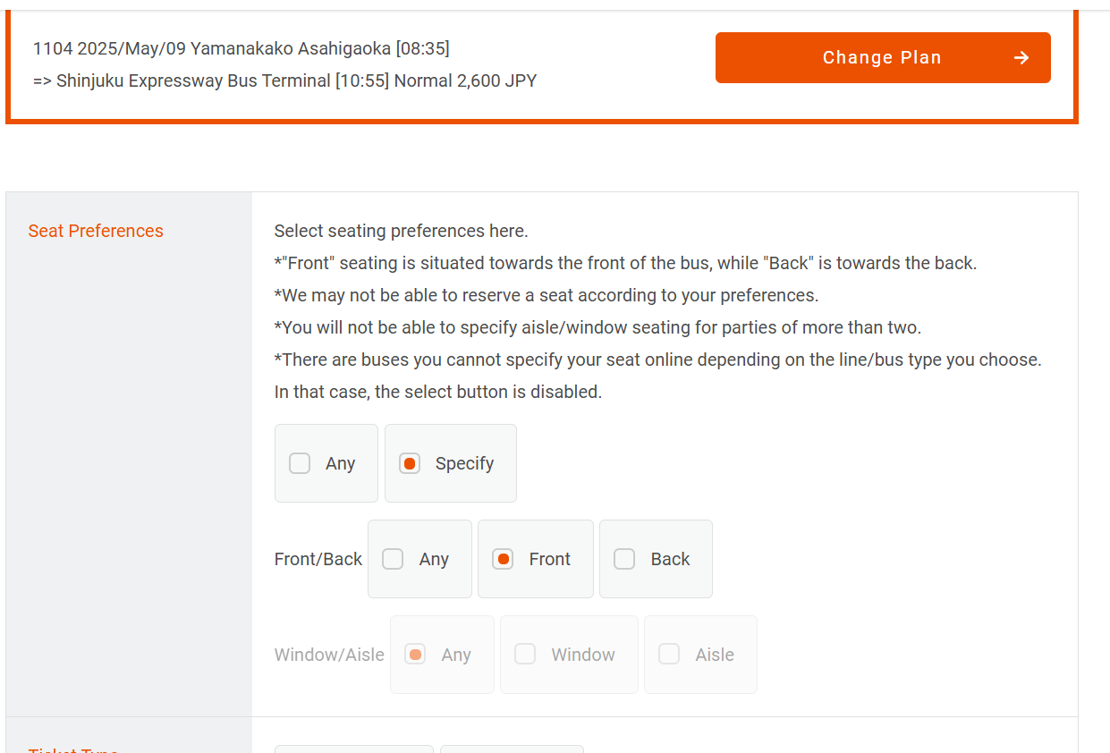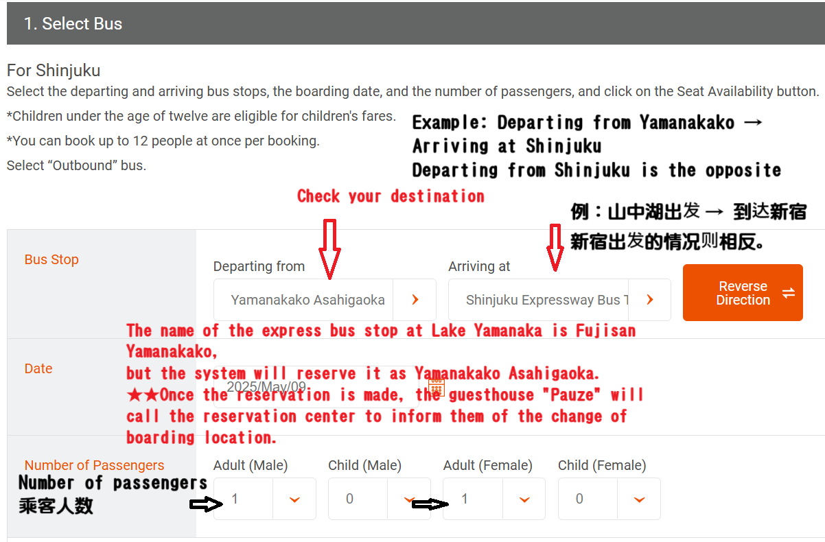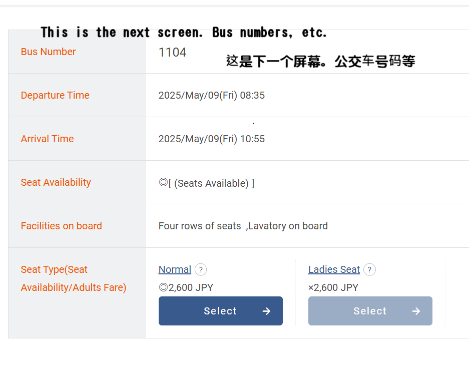 How to reserve an express bus ticket in a foreign language